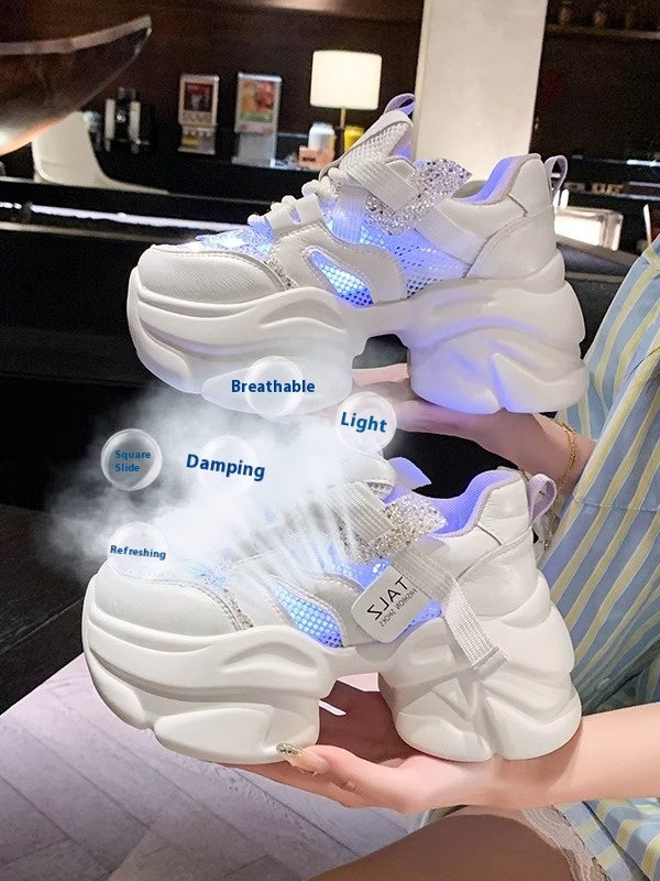 Genuine Leather 8cm Thick Bottom Women's Height Increasing Casual Sneaker
